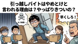 バイト博士今回は『引っ越しバイトはやめとけと言われる理由は?やっぱりきついの?』について、実態・口コミ・メリットデメリットを踏まえて詳しく解説します。引っ越しバイトは「やめとけ」と言われる理由は?引っ越しバイトについて調べると、「やめとけ」...